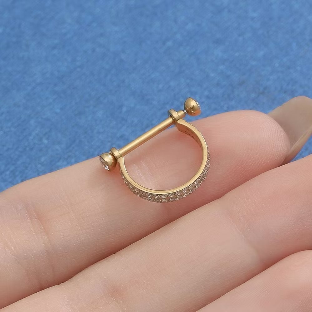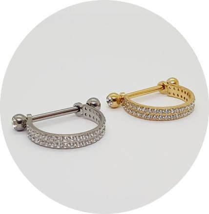 Piercing Meia Argola Aço Cirúrgico 2 Fileiras Zircônia Cravejada/A283